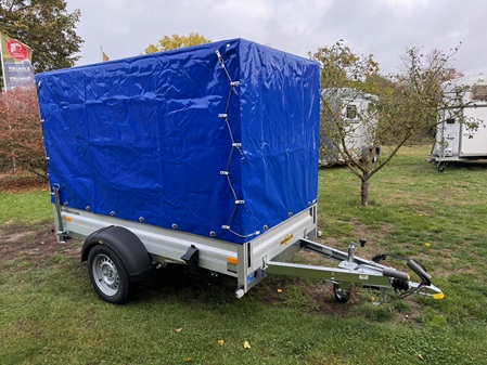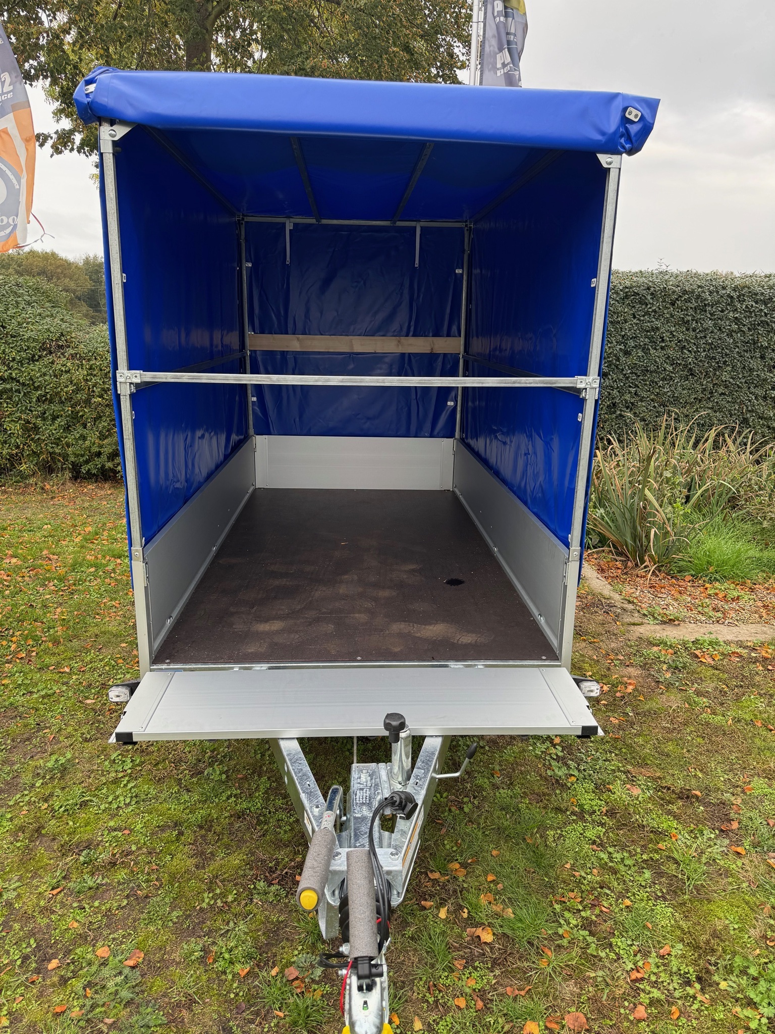 Humbaur Kastenanhänger HA 132513 KV - Alubordwände mit Klappe vorn und hinten + hochwertiger Planenaufbau Original Humbaur (kein "billig" Nachbau) sowie 2 Fallstützen.